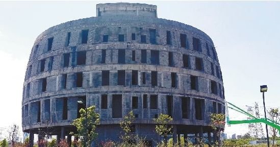 杭州:外形酷似酒桶烂尾楼 荒废七八年