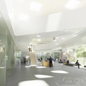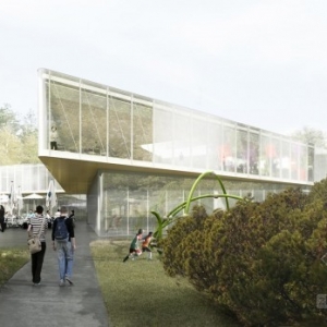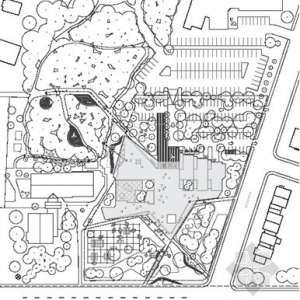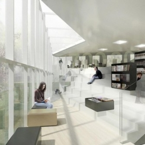 标题缩写:皮埃尔图书馆 该建筑周围设有一个理想化的公园,公园旁边开辟了一条弯曲的街道,将公园与图书馆划分开来。读者们根据年龄的不同,活跃于公园的不同位置,而图书馆周边不同位置的服务恰好符合各年龄段读者的需求。另外,皮埃尔图书馆的绿色空间十分广阔,预计在现有基础上还将设计两个室内花园,花园和自然光将会成为森林的一部分。另外,图书馆的室内被设计为多个灵活的部分,可以适应不同活动的需要。电梯和楼梯间被安置在图书馆的两层,在电梯的两边还设有两个小会议室。