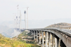 汝郴高速公路赤石特大桥主桥全长1470米,最大跨径380米,为同类型桥梁中世界第一大跨径高墩多塔混凝土斜拉桥。日前大桥4个主塔全面封顶,计划于2014年底全面建成通车。