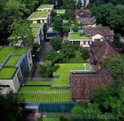 在建造过程中,我们尽量回收、再利用原建筑的砖、木等建造材料,并使用生态木、透水广场砖、植被砖、佛甲草等环保材料,在低造价前提上实现生态环保的目标。