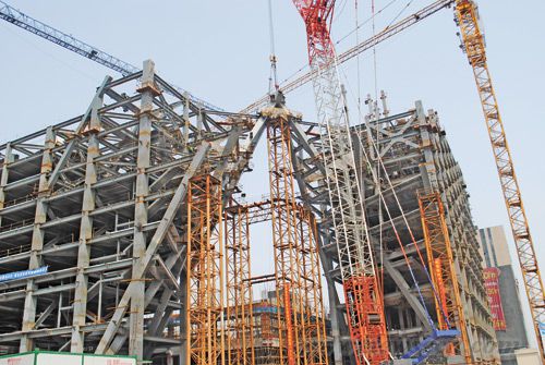 宁波嘉裕酒店是为集办公、会议、餐饮、酒店于一体的超五星级酒店项目,总建筑面积72897平方米,用钢量约9300吨,建筑面积约7.3万平方米。该项目由阿联酋迪拜七星级帆船酒店的设计者——英国阿特金斯建筑设计公司主创人员设计,分两个塔楼、裙房和“L”形连接区,建筑的西、南两个立面上通过体块的变化形成两个“V”字,从西南角看酷似中央电视台新址。 据中建钢构有限公司现场负责人介绍,宁波嘉裕酒店“L”形连接区整体外倾33度,5层以上结构外悬挑,并且在结构层11层和15层均有超重铸钢件,完全依靠悬挑结构自身的合理受力体系承重,施工难度大,危险性高。为确保此次50吨铸钢节点吊装成功,事先对铸钢件主要数据进行测算和验收,经测量数据与理论模型模拟合格后方才起吊。此番铸钢件顺利吊装就位,为第二个62吨重铸钢件吊装积累了宝贵经验。据悉,第二个铸钢节点将于4月底开吊,届时,构件起吊重量将刷新宁波市单个构件重量之最。 |