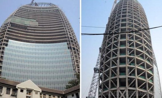 近日,与央视新大楼“大裤衩”遥遥相望的人民日报新大楼火了。新浪微博中的一组新大楼的照片,被网友送上“电熨斗”、“航母”、“夜壶”的封号,甚至还有人称之与央视“大裤衩”阴阳调和。 坐落在北京市朝阳区的人民日报新大楼这几天被网友调侃得不亦乐乎。 在微博照片中,嵌有效果图和大楼在建实景图。效果图中,建筑左侧顶部向外延伸,建有一个停机坪。而在实景图中,新大楼顶部目前正笼罩着一层层绿色的厚厚的安全网。 不过,该大楼的设计者、东南大学建筑学院教授周琦倒是很坦然。前天,作为领衔设计者,周琦也首次做出回应。他告诉记者,不管大楼被称作什么,自己都不介意,“还有人说像企鹅呢,但这些不会给我造成困扰。” |