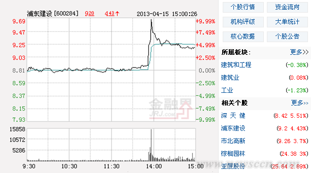 受相关利好消息刺激,周一午后浦东建设(600284)股价突然大幅拉升,截止发稿时,该股涨5.56%,报9.3元。