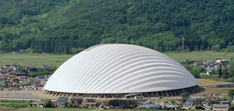 这座巨蛋体育场于1997年六月完工,这里既是棒球场,也是足球场,还能举办其它活动。这座椭圆形的体育场上覆盖有25,000多片柏树板,柏树板上有一层特殊的聚四氟乙烯薄膜。这种透明状超级强大的材料,可以保护体育场内部免受各种自然灾害影响,同时白天自然光还可以直入场馆内,不用再使用照明灯。在这个半圆形的建筑里,观众的视角在观看比赛时也不受阻碍。伊东丰雄独创的充分考虑空气动力学的设计可以抵御强风和大暴雪。