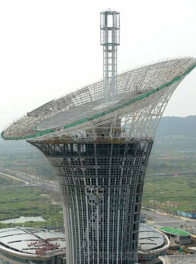 国内最大的仿生建筑——造型为“马蹄莲花”的武汉新能源研究院B塔楼主体结构昨日封顶,预计下月将竣工投入使用。 施工方中建三局有关项目负责人介绍,新能源研究院工程位于武汉东湖高新区未来科技城内,由B塔楼和C1-C5裙楼组成,总建筑面积51495平方米。B塔楼地上17层,主体结构总高度为127.9米。楼顶将安装风力发电机、太阳能发电设备,所发电可基本满足该楼的用电需求。 |