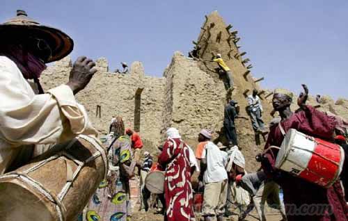 马里廷巴克图 廷巴克图曾被教科文组织列入濒危名单,但当局采取恰当保护措施后,于2005年被排除。但是广泛存在的社会问题,依然威胁着这个古代遗址。按照传统,当地人用特殊手艺刷新表面,用土砖修复缺口。但随着当地的现代化,年轻人不再梦想成为这种手艺人,传统工艺也在随之消失。这里的建筑已经非常危险,但不知道谁来保护它们。 |