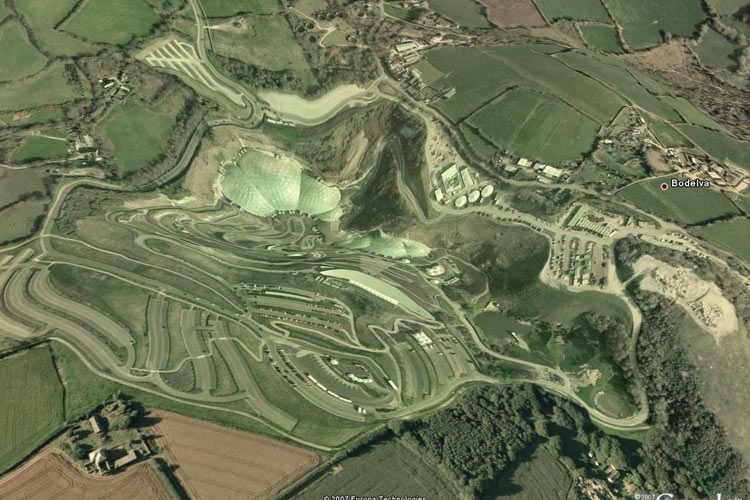 尼古拉斯·格雷姆肖在该设计的表现比较大胆,一连串结合地形自由排布的玻璃穹隆晶莹剔透。这些被格雷姆肖称为生物穹隆的玻璃体,自然而又充满动感,其形态让人联想到自然界很多的生物形态,这种“另类”的表现方式同以往的“现代”建筑是截然不同的,而产生这种形态的设计构思则来源于对能源消耗和生态环境可持续循环的关注。格雷姆肖在谈到设计的定位时认为,为了每一个生物穹隆中的园艺培植,需要充分利用阳光,并由此确定建筑必须开阔;同时为保持与自然环境协调,必须充分利用地形是深坑的特点。各种要求综合在一起,创造出了这个生机昂然的有机形体。