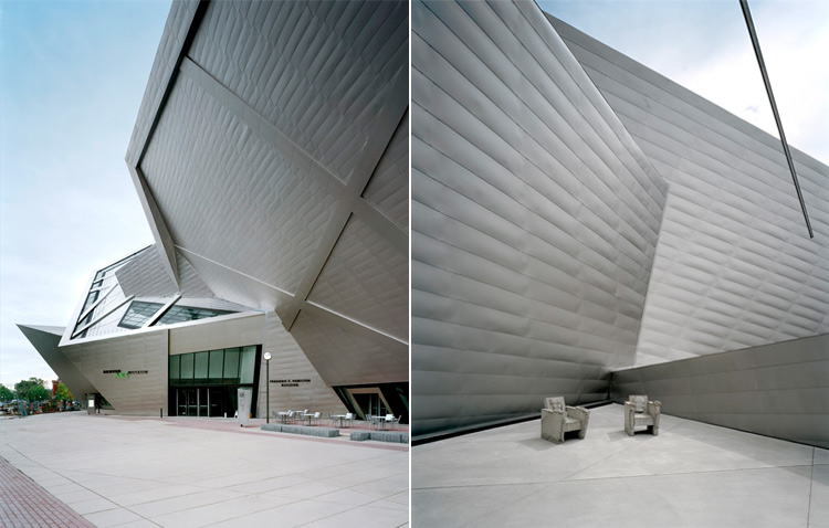 位于美国科罗拉多州的丹佛艺术博物馆是所非盈利性质的艺术机构,创建于19世纪90年代。该艺术博物馆最初名为“丹佛艺术家俱乐部”并于1949年开放画廊,通过保留和展示古典艺术和现当代艺术来鼓励和启示落基山区居民的艺术鉴赏能力。该博物馆于在20世纪50年代增加了儿童中心,并于1971年建成由意大利建筑师吉奥·庞蒂( Gio Pointi )和丹佛本地詹姆斯·萨德勒联合建筑公司(James Sudler Associates) 共同设计的“北楼”,“北楼”是座7层建筑总面积达到210,000平方英尺,并在建成后首度实现在该幢建筑容纳展示其当时所有藏品。该建筑也成为了这位重要的意大利现代设计大师在全美境内唯一完成的作品。2006年10月,丹佛艺术博物馆以弗雷德里克·C·汉密尔顿楼(Frederic C. Hamilton)的完成开放得以再度扩建,此次担当设计的是丹尼尔·里伯斯金:“峥嵘”的造型是以科罗拉多州绵延壮观的山脉和岩石,以及丹佛人乐观开放的个性为设计灵感,象征着落基山区岩石在大自然作用下呈现各种几何造型的不规则美感也折射出科罗拉州充沛的阳光。