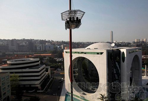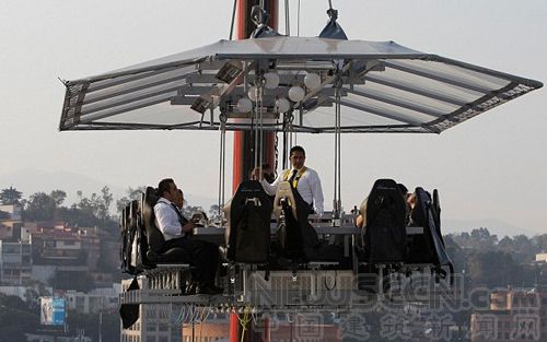 你想知道在高空中享受美餐是怎样的感觉吗?美国新墨西哥州的一家“悬空餐厅”可以让你美梦成真。据英国《每日邮报》11月30日报道,在阳光小镇圣达菲的一家喜来登酒店旁,一家拥有22个座位、由起重机吊在空中的餐厅最近受到单身男女的热捧。 顾客在该餐厅享受美食的同时,还可以俯瞰整座小镇的美景,十分惬意。 高空餐厅因其独特的设计理念和全新的就餐体验而受到很多顾客的青睐,并且在悉尼、拉斯维加斯、摩纳哥和伦敦早已经开设有实体店。圣达菲新开业的这家“悬空餐厅”距地面约150英尺(约45米),顾客在餐厅上升前需要用皮带将自己固定在皮质赛车座椅上。餐厅座椅可以360度旋转,方便顾客多角度鸟瞰整座小镇。