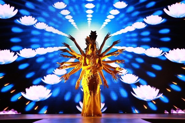评委代表 吴家骅教授 致辞 因故不能到场的评委梁景华先生,通过视频寄语现场观众,他表示本届传媒奖参赛作品质量之高为历年之最。而同样通过视频寄语点评的评委马克·海默尔亦高度评价了本届传媒奖作品的专业性。 19时30分,由重庆刘一手心火锅聋哑员工排练的“千手观音”舞蹈盛装亮相在颁奖典礼的舞台中央,在轻快明朗的旋律中,舞者们通过优美的肢体语言,向在座嘉宾演绎他们热爱生活、追求梦想的理想心态。刘一手版的千手观音舞蹈,其立意也巧妙呼应了本届传媒奖“爱·设计:大爱无言,梦想随行”的主题。