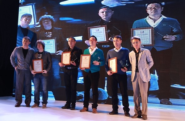 千手观音 起舞传媒奖现场 19时40分,带着视觉与情感上的双重震撼,在与会嘉宾的殷切期望和高度关注中,本届传媒奖最激动人心的时刻颁奖时刻终于来临,第一个颁奖环节率先揭晓的首项大奖是年度餐饮/酒吧空间大奖,随着LKK洛可可设计集团董事长贾伟和哥本哈根Seidenfaden Design创始人兼创意总监、丹麦设计师协会主席特勒尔斯·萨德法登先生手中的信封打开,荣获”年度餐饮/酒吧空间大奖”的设计师与设计作品一一呈现: 烧肉达人--上海五角场店 设计师/利旭恒(台湾) 希腊”海洋13号”咖啡吧 设计师/Minas Kosmidis (希腊) 以色列Taizu 亚洲餐厅 设计师/Pitsou Kedem (以色列) 梅林阁餐厅 设计师/许建国(合肥) 伦敦Olivocarne餐厅 设计师/Pierluigi Piu(意大利) 东京铝合金花园餐厅 设计师/Moriyuki Ochiai (日本)
