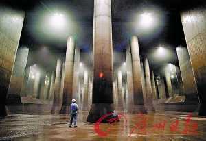 东京地下排水系统建成于2006年,堪称牢固、先进,由一连串混凝土立坑构成,地下河深达60米。