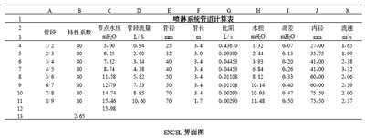 随着国民经济的发展,人民生活水平的不断提高,多功能、高耸建筑林立满目。要求安装自动喷水灭火系统的建筑物也越来越多。《自动喷水灭火系统设计规范》2001 年版也随之作了大量的修订,规范中的9.1.3 规定,系统的设计流量应按最不利点处作用面积内喷头同时喷水的总流量确定: 按照规范要求累计作用面积内的每一个喷头的流量,计算非常繁琐,计算量大,容易出错,按经验估算,误差可能很大。如果用EXCEL 自动计算表格进行计算,能够简化很多计算步骤,并可根据流速随时调整管径大小,做到既简单准确又经济合理。 由于自动喷水灭火系统网嵌套计算很多,所以该计算表格主要采用数组公式进行编辑。配水管的计算是利用管路特性系数进行,而配水支管则是利用喷头的特性系数进行计算,同一工程中,喷头的特性系数一般都相同,为已知值;而配水支管的管路特性系数则大多数是不同的,管路特性系数需求解,因此将计算表分成两部分,一部分计算配水支管,另一部分计算配水管。现将EXCEL 自动计算表格的设计过程分步介绍如下: