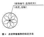 简介: 植物种植设计施工图是植物种植施工、工程预结算、工程施工监量和验收的依据,它应能准确表达出种植设计的内容和意图。然而,在我国园要植物设计施工图制图方面还存在按图施工的可操作性不足,施工员难以理解设计意图,施工无法完会达到要求等问题。本文探索如何在设计图纸中清楚地表达设计的思想、施工方法和后续养护管理要求等,使其更具科学、合理性与可操作性。 植物种植设计施工图是植物种植施工、工程预结算、工程施工监量和验收的依据,它应能准确表达出种植设计的内容和意图。然而,在我国园要植物设计施工图制图方面还存在按图施工的可操作性不足,施工员难以理解设计意图,施工无法完会达到要求等问题。本文探索如何在设计图纸中清楚地表达设计的思想、施工方法和后续养护管理要求等,使其更具科学、合理性与可操作性。 1、植物种植设计施工图的常见问题 1.1 缺少对现状植物的表示 植物种植范围内往往有一些现状植物,从保护环境的角度出发,应尽量保留原有植物,特别是古树古木、大树及具有观赏价值的草本、灌木等。设计者往往只在施工图中用文字说明而没有图示现状植物,使施工图的准确性不高和可操作性不强,有些甚至连说明都没有,最后导致错伐植物,破坏环境。 1.2 图纸不全,图纸内容过于简单 建筑制图规范对建筑施工图中的总平面图与施工大样图分别有严格的规定,图纸的索引关系清晰,许多植物种植设计者能参照建筑制图规范进行制图,设计文件完整可靠(如对在同一组群内要求的苗木高度不一,同一种植物在不同位置种植时的苗木规格、整形形式和施工技术要求不同等问题,用大样图图示清楚或在平面图中用文字标注说明),但还有一些是一图了事--只有一张植物种植设计总平面图,没有大样图,图中的内容表达不清,施工人员无法完全理解设计意图,现场施时临时更改设计的情况很普遍 1.3 文字标注不准确 植物种植设计图普遍采用特定的图例表示各种植物类型,用文字(或数字编号)标注说明植物名称,而对不同种植点的植物规格要求、造型要求和重要点位的坐标等普遍都没有标注,造成按图施工的可操作性不强,往往需要设计人员亲自选苗、到现场指导和定点放线,才能达到设计要求。这不利于分工合作,造成人力资源的浪费。 1.4 苗木表内容不统一 由于植物的有生命性特点,同一种植物的生长状况,形状姿态,人工整形修剪形式不一,所营造出来的景观有异,施工技术、养护要求和工程营造也不同。我国现行的《风景园林图例图示标准》对种植设计图中的苗木统计表示未做规定,有教材认为苗木表的内容应包括:编号、树种、数量、规格、苗木来源和备注等内容,比较普遍采用的苗木表的格式也包括:编号、树种、规格、种植面积、种植密度、数量和备注等内容,少数图纸能做到在苗木表中包括植物的拉丁学名、植物种植时和后续管理时的形状姿态,只工整形修剪形式事特殊造型要求等。由于苗木表内容不统一,不仅对工程施工带来不便,而且对工程预结算、工程招标、工程施工监理和验收等工作带来困难。 2、现行的相关规范 1995年7月25日由建设部建标[1995]427号文发布编号为CJJ67-95的《风景园林图例图示标准》,自1996年3月1日起实施。该标准中的第三、四部分分别对常见植物的平面及立面图例做了规定与说明,使植物种植设计中常用图例图示有统一的制图标准,根据实践经验该标准尚存如下不足: ① 对现状植物的图例夫规定; 3、园林植物种植设计施工图制图方法与图例探索 3.1 现状植物的表示 在广州市白云山西侧绿化休闲带绿化设计中,设计者结合植物现状条件,保留了大量乔灌木,其做法是应用全站仪普测设计范围内的大树位置坐标数据,套叠在现状地形图上,绘出准确的植物现状图,利用此图指导方案设计与种植设计。在施工图中,用乔木图例内加竖细线的方法区分原有树木与设计树木(图1),再在说明中讲明其区别(如果国家制图规范有这点规定,就不必再加文字说明了)。