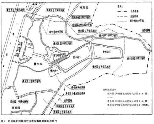 3.2 总图与分图、详图问题 设计范围的面积有大有小,技术 要求有简有繁,如果一概都只画一张平面图很难表达清楚设计思想与技术要求,制图时应分别对待处理,在广州市白云山西侧绿化休闲带绿化设计中,由于设计范围面积大,设计者采用总平面图(表达园与园之间的关系,总的苗木统计表)→各平面分图(表达在一个图中各地块的边界关系,该园的苗木统计表)→各地块平面分图(表达地块内的详细植物种植设计,该地块的苗木统计表),→重要位置的大样图,四级图纸层次来进行图纸文件的组织与制作(图2),使设计文件能满足施工、招投标和工程预结算的要求。 ![]() 对于景观要求细致的种植局部,施工图应有表达植物高低关系、植物造型形式的立面图、剖面图、参考图或文字说明与标注。 3.3 数字和文字标注 从制图和方便标注角度出发,植物种植形式可分为点状种植、片状种植和草皮种植三种类型,可用不同的方法进行标注。 3.3.1 点状种植 点状种植有规则式与自由式种植两种。对于规则式的点状种植(如行道树,阵列式种植等)可用尺寸标注出株行距,始末树种植点与参照物的距离。而对于自由式的点状种植(如孤植树),可用坐标(采用AutoCAD辅助制图进,这点很容易做到)标注清楚种植点的位置或采用三角形标注法进行标注(图3)。 ![]() 点状种植植物往往对植物的造型形状、规格的要求较严格,应在施工图中表达清楚,除利用立面图、剖面图表示以外,可用文字来加以标注(图4),与苗木表相结合,用DQ、DG加阿拉伯数字分别表示点状种植的乔木、灌木(DQ1、DQ2、DQ3、…DG1、DG2、DG3…)。 ![]() 植物的种植修剪和造型代号可用罗马数字:Ⅰ、Ⅱ、Ⅲ、Ⅳ、Ⅴ、Ⅵ…,分别代表自然生长形、圆球开、圆柱形、圆锥形……等。 3.3.2 片状种植 片状种植是指在特定的边缘界线范围内成片种植乔木、灌木和草本植物(除草皮外)的种植形式。对这种种植形式,施工图应绘出清晰的种植范围边界线,标明植物名称、规格、密度等。 对于边缘线呈规则的几何形状的片状种植,可用尺寸标注方法标注,为施工放线提供依据,而对边缘线呈不规则的自由线的片状种植,应绘方格网放线图,文字标注方法见(图5),与苗木表相结合,用PQ、PG加阿拉伯数字分别表示片状种植的乔木、灌木。 ![]() 3.3.3 草皮种植 草皮是在上述两种种植形式的种植范围以外的绿化种植区域种植,图例是用打点的方法表示,标注应标明其草坪名、规格及种植面积。 3.4 苗木表的内容与格式 苗木表主要作用是: ![]() 4、结语 笔者在设计实践中采用文本述的方法,提高了园林植物种植设计施工图的可操作性使设计图纸更科学、合理。建议有关部门在修订与园林植物种植设计制图相关的规范时考虑本文所述的问题。 |