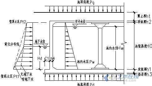 水池地基的荷载主要来自于:钢筋混凝土的自重、土的压力(地埋式)、水的重力。(抗浮的将另行开贴讨论)