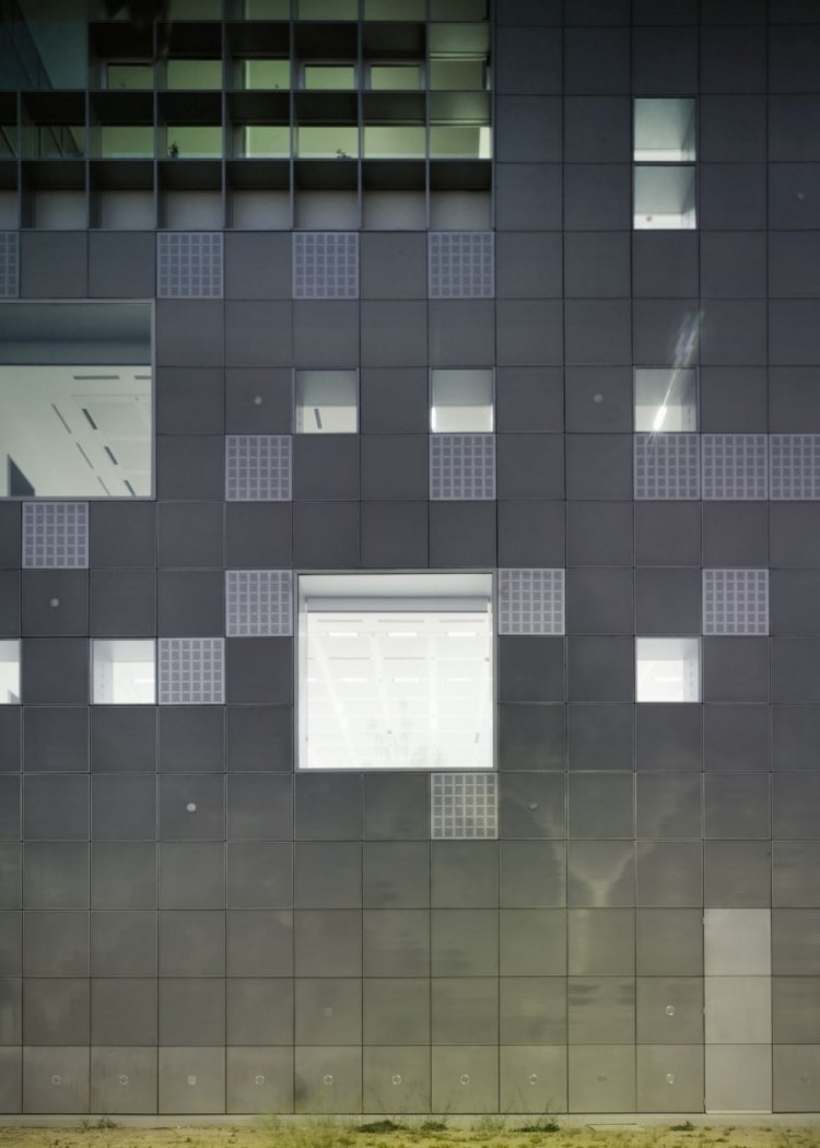 通讯社外观采用不同材质的几何图案拼接网格而成,并充分考虑阳光照射角度和射程;建筑的天窗和外墙窗口也是该建筑突出的设计之一,既能够保证阳光的照射,同时有效阻挡室外污浊空气进入。建筑物正中心是一个“天井”,屋顶采用半透明材料,自然光的引入降低了室内能耗。