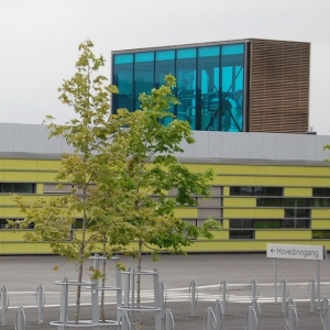 活动与学习 沿着建筑的南墙有一个活动区域,这里有篮球场、棒球场、跑道、跳远用的沙坑和乒乓球台。这个地方也是学生聚集的场所。有几处户外教室、宁静的内部庭院及可承载众多学生的平台。建筑南侧的坐凳可用以停驻休憩,也可为室外课堂的交流提供方便。沟壑南边为一处阳光草坪,并有幽径通往树林。林中的每棵树都标有挪威文和拉丁学名,以及其规格、树龄等信息。柏油路上有些几何图案以供学习。