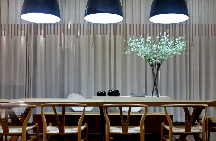 (图:宁波矩阵酒店设计有限公司现场照) 我认为未来办公空间的色彩还是会以平缓舒适为主,过于强烈和亮丽的色彩会对人的情绪产生极大影响。情绪会影响效率,会影响健康,会影响人际关系。如果要让空间尊重人,首先就得利用色彩安抚人的情绪。 China-designer记者: 从2013年的最具代表性办公空间作品中我们可以看到,越来越多的公司对办公空间设计的要求从只追求单一的功能性或创意性,走向强调功能与文化的结合。那么面对一个全新的项目,您一般是通过怎样的方式挖掘该公司的文化性,如何做到让创意有文化感,文化有新鲜感的? 王践 :这里指的文化并不是广义的文化,而是指你服务对象的企业文化。首先是通过沟通与交流,主要是针对以下几个方面的倾听和探讨:企业理念;价值观;经营哲学;企业精神;企业道德;企业制度;文化结构以及企业使命和社会效应。其次是走访和了解,观察企业的现状、员工精神面貌以及现有办公环境。然后是提炼与整理,找出独特性、继承性、相融性以及创新性。你只有读懂了对方的企业文化,了解对方的真实需求,你才能有针对性地进行创意。即你所表达的形式与功能,色彩与环境,精神与气韵是专属于你所服务的对象的。那么,你的创意才具有文化性。而文化的新鲜感在于其的独特性,还有你如何用现代的手法移植和嫁接传统的形式表达。 China-designer记者: 当今无论是老板还是员工都越来越趋向于年轻化,80后、90后年轻人越来越多,他们与60、70后的业主有一些差别,从一定程度上他们决定设计的趋势。随着空间使用者年龄层的变化您能否为我们预测一下,未来3-5年办公环境将会迎来什么样的变化呢? 王践 :一定是更加年轻化,科技化和便捷化。更注重节能,环保的理念,更关注办公环境的健康和人性化需求。这改变不光是年轻一代价值观和世界观的改变,这是生活方式的改变,是整个人类社会共同的目标和方向。