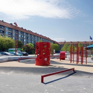 该广场成为了哥本哈根公共城市空间,包括Bavnehøj体育场、Bavnehøj幼儿中心和Bavnehøj公共浴池。道路、停车场和广场简洁自然地分隔开,骑自行车、驾车、步行都可以轻松到达。广场的整体设计包括一个多边形的边缘领域,它由混凝土构件、木质平台、整齐的植物床、黑暗的路面铺装组成。边缘领域的设施有着休闲活动和体育运动的功能,它们的材料和色彩与整个广场相协调,表达了一个连续而坚固的空间。 多边形混凝土构件和木质平台形成一系列连续的空间元素,同时提供了场地的功能设施如滑冰场、休息设施以及植物保护设施等,这些也为停车场创造了一个自然的物理屏障。在幼儿中心前面,起伏的橡胶铺面这种俏皮的景观元素为孩子们提供了自由的活动场所。 译者:筑龙网 饭团小组