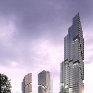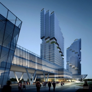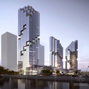 阳台的形式引用了起伏的地形,视觉上把建筑外形分隔开。自然水公园融入景观,这个公共空间沿着河,为行人提供30米宽的走道,并连接城市道路。高架裙房都是相互关联的,释放下面的空间,形成开放的广场。三塔是由面向垂直气缸,提高交互和视图。使用多边形线和整体布局有助于连接建筑与环境和交通。