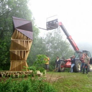 封闭的支柱希望能被作为教育设施,同时提供一个作为圣所和艺术品的设计解决方案。与其他构造蝙蝠的栖息地不同,塔的目的是明确可见,位于纽约东奥托griffis雕塑公园。该建筑的形式吸引蚊子湖对岸的动物。结构的底部,种着一些细香葱和牛至等草药,以配合蝙蝠的饮食。 “蝙蝠塔”主要是由镶槽木材制作,以便夜晚蝙蝠可以倒挂站立,并且从洞口进出。天花板用深色木材吸收阳光,它创建一个适宜蝙蝠孵化的室内空间。