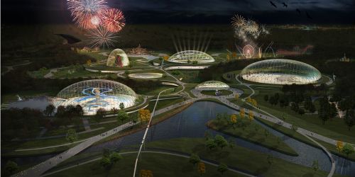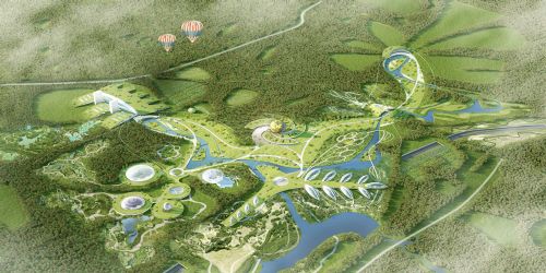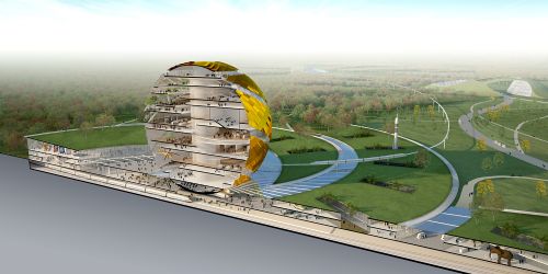 “每一个单元都有一个主题,建筑形式相应的也对这些主题进行了呼应。这样使得每个单位都形成了独特的氛围,每个单元中的建筑都是不同的,但是他们也有一些共同点:建筑顶部有一个绿色空间和娱乐路径,每组建筑都有一个很大的玻璃圆顶。建筑与广场和公园中心进行着互动式的呼应。”