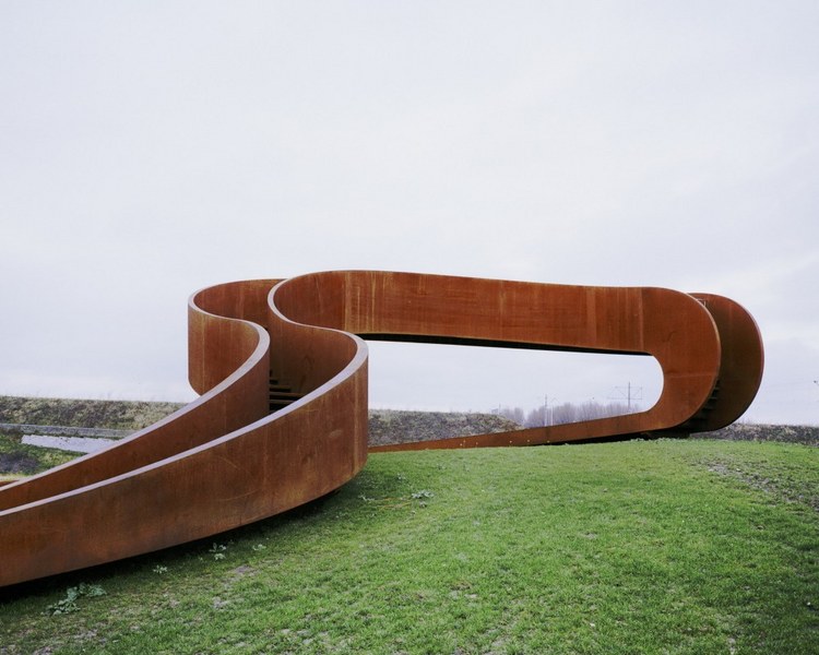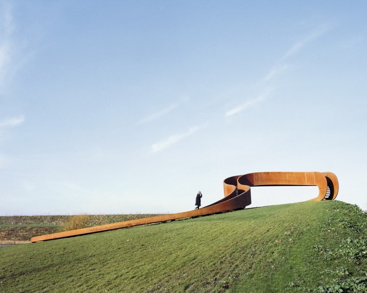 NEXT Architects设计事务所创造了一个名为Elastic Perspective的楼梯,该造型夸张的设计位于巴伦德雷赫特省的Carnisselande山顶,整个装置由生锈的柯尔顿钢铁制成,设计理念受到了莫比斯环的启发。
