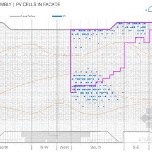 摘要:UNStudio与Arup工程公司密切合作,为世界最大的光伏电池板生产商之一——韩国Hanwha总部——设计了一个“由周边、自然、环境引导的”建筑立面。这个立面设计日间能控制室内温度,而到了夜间会成为动感的灯光秀。