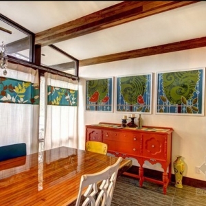 英国温馨惬意充满童趣住宅设计,进入客厅丰富的配饰映入眼帘,暖色调的墙壁柔和的地毯使它看起来温馨至极,整个家中被各种亮丽的颜色所点缀,再大量的使用深色木质家具,看似凌乱实则温馨,为了给孩子创造一个适合的地方,设计师腾出了很大一块地方作为孩子们的游乐场,连同洗手间的色调也是鲜亮为主,主人房则是简单的深色系,整体亮丽温馨。这栋住宅以“欢乐圣诞”为主题设计,主人希望创造一个既复古适合老年人生活,又温馨惬意充满童趣的地方。 关键词:住宅设计 童趣住宅