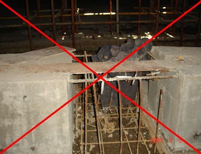 (不得在人防墙体嵌墙暗装配电箱) 9. 战时进、排风竖井应该设计、施工一次到位。施工应注意在竖井内设爬梯;出地面部分作防倒塌棚架结构;地面通风口设多面进风百叶窗,其中靠爬梯侧为活置式,口径≥500×800mm。(作法详见《07FJ02》及《07FG02》) 10. 排风口部防密门开启侧防爆呼唤铵钮须在浇筑侧墙前预埋到位,防爆电缆井请注意不要漏掉施工。(作法详见《07FD02》及《07FJ02》) 五、顶板浇筑 1. 顶板吊钩预埋。各人防门、临战封堵在顶板内预埋吊钩土建施工单位不能漏埋。(作法详见《07FJ03》) 2. 在进风口部顶板内超压测压装置DN15镀锌钢管须预埋。(作法详见《07FK02》)