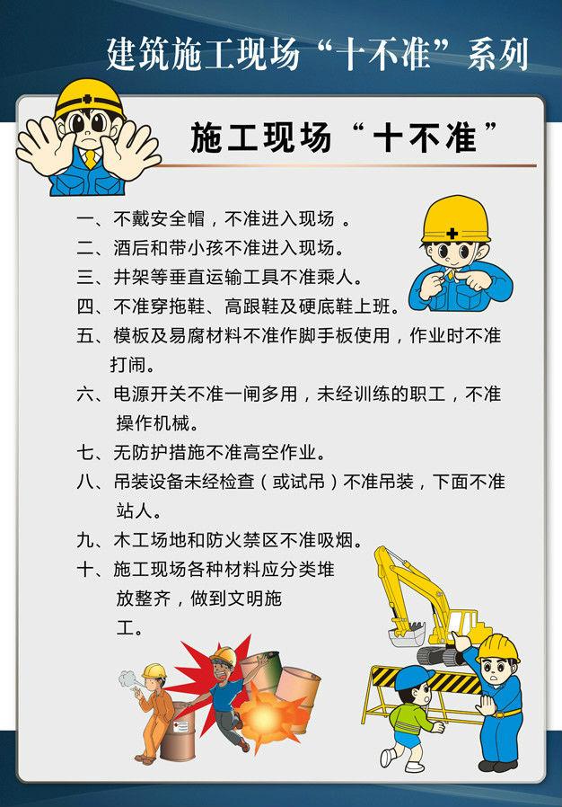 建筑工程施工现场“十不准”系列挂图,9张,防患于未然,为建筑工人的安全保驾护航。