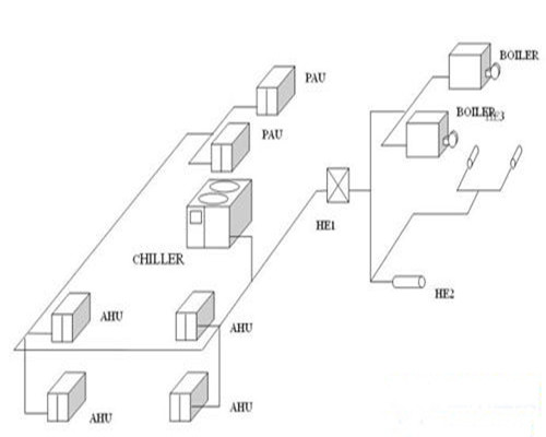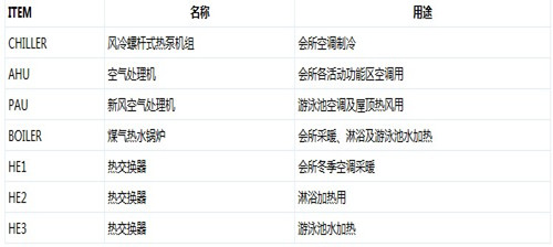 游泳池为地下两层贯通且又露出首层地面一米多的半地下室结构,所以利用其地面部分的窗口改为游泳池通风的进出风口。因为游泳池水经消毒处理后,会蒸发出一些有害气体,不宜使用二次回风的再循环空调形式,故游泳池采用了集中式空气处理方式的直流式(全新风)系统。这种系统使用经处理过的新鲜空气去替换或稀释(冲淡)室内有害气体的浓度,消除余热和余湿,然后直接排出室外,但对系统耗冷,耗热量也最大。所以在游泳池进风系统上单独设置了一台DWAA空气处理机。而排风机为两速混流风机,平时只需低速运行,这样不至于使空调冷量损失太大,根据游泳池使用状态,不定期开启排风机高速运行,以全面排出游泳池室内的有害气体。 以上空调系统,包括壁球场空调及冷气机系统以及消防排烟系统由某承包商以129万元承建。在工程建设期间,有人提出游泳池顶冬季会出现结露、霉变现象,从而损坏游泳池顶涂料。为了防止产生结露水,又单独增设了一台空气处理机及风管系统,出风口近距离由下往上对游泳池屋顶表面区域吹热风。工程又追加了11.05万元,使游泳池空调通风系统趋于完美。游泳池与俱乐部其它区域空间在上部有部分连通,由于游泳池排风量大于进风,其游泳池室内保持负压,而俱乐部其它功能区域污浊空气可通过此开口迅速排出,使气流组织更加合理。 3.供热系统 俱乐部有三个系统需提供热源:空调冬季采暖、淋浴热水和游泳池水加热