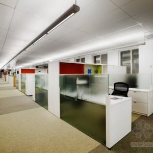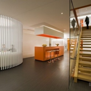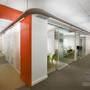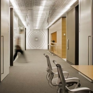 Lemay Associés工作室设计的Astral Media公司新的办公室,设计初衷是创造一个全新、灵活、明亮的办公空间,四层楼的办公室设施齐全,各种类型的会议室,办公区域,餐厅,休息室,咖啡厅等等一应俱全。白色天花板和光洁的地面在灯光的映衬下显得明亮舒适,多件亮色家具使整个空间都活力了起来。 关键词:办公室 活力办公室设计
