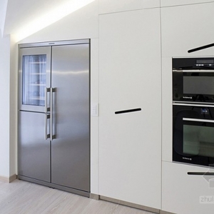 这是一处不规则型的阁楼公寓,设计充分配合了倾斜的屋顶,在室内创造出其他千变万化的造型。乳白的主色调简洁现代,LED照明应用的得心应手,配合着多变的几何形,勾勒出边框,增强了立体感。