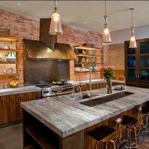 复古工业风的住宅设计,国外一阁楼住宅,温馨的地板,有些斑驳的门窗,有些古旧的家具,厨房裸露的墙砖,昏黄的灯光,卧室和洗手间又是十分鲜艳厚重的颜色,看起来别扭实则协调,浓浓复古工业风的住宅。