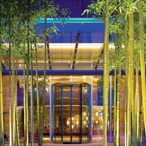 园林设计 园林设计 酒店入口的园林设计以简约为主,一组组的竹林,设于平静但流动的水面,盛载于现代设计的水池之内,既为客人带出宁静平和的感觉,亦同时流露点点中式的味道。