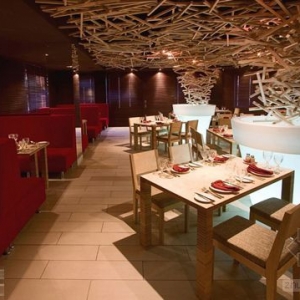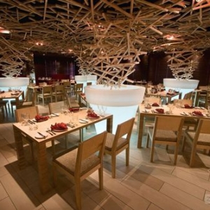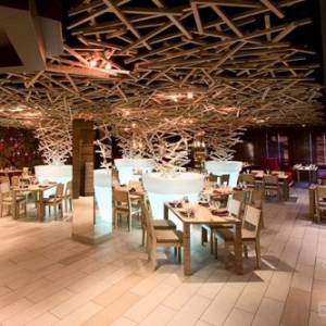 “碎片”餐厅(Sliver Restaurant)由俄罗斯设计师DarkDesignGroup 完成其室内设计的。整个室内的主角是顶面,用的是木质材料的条条。镶嵌与顶面并散落到置于地面的白色亮盆中。非常独特的室内设计,非常有创意、难忘的工作。