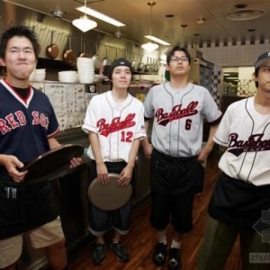 2004年9月30日,服务员正在观看棒球比赛的现场直播。这是位于日本东京的一家棒球主题餐厅,服务员都身着棒球服。 |