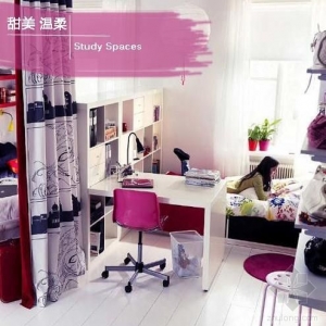 蓝色是一种永恒的象征。蓝色是一种非常纯净的颜色,通常让人联想到海洋、天空、水、宇宙。纯净的蓝色表现出一种美丽、冷静、理智、安详与广阔。由于蓝色沉稳的特性,有着勇气的含义,很多时候父母在给自己的孩子选择家具,特别是男孩子的时候,往往会选择这个颜色,这样的房间有利于培养男孩子独立勇敢的性格,也有利于孩子静心下来学习。 Style2:粉色甜美温柔型