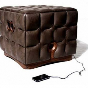 非主流沙发设计 这款沙发整体来看就像一大块巧克力,但是它和普通的沙发不一样,它集成了音箱在其中,并且在外部配有一个MP3播放器,外部是皮质结构,内部是木制。