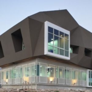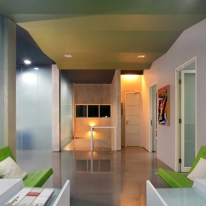 建筑师:Atelier Cosmas Gozali 地点:马伦达,北雅加达,印度尼西亚 项目建筑师:Raymond Djohan, ST 场地面积:5000平米 项目面积:300平米 这座建筑的特色是其外观和所在地点。为了展现出轮船公司的形象,建筑师就像艺术家创造一件雕塑品一样的探索和工作。新潮的建筑设计理念和建筑轻重部分的设计,在这个星球岩石丛生的地面上创造出一个宇宙飞船着陆的景象。在这种一望无际的岩石沙滩的背景下,这座建筑成为了这个地区的标识。 建筑独特的部分是上层建筑,也就是立面和屋顶设计。不规则的屋顶是一种极具创新的设计,建筑师经过了仔细、严谨的思索。 整个建筑看起来像是一个大的环状珊瑚岛,坐落在海岸边的岩石之中。建筑内的房间设计也非常用心,功能和外观都很实用。室内的颜色运用也为室内环境带来了全新的微妙感。冷色调的灰色和白色加上清新的淡绿色和亮蓝色,使得室内给人一种愉悦感。 另外,建筑内外和谐一致的设计也归功于建筑师探索创新的设计。