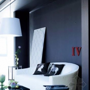 图案的力量 黑白灰平淡调性的现代风格装饰中,因为加入了带有古希腊、古罗马传统图案的靠包而变得充满戏剧性。墙面上的罗马数字,更是让整个空间年轻化。