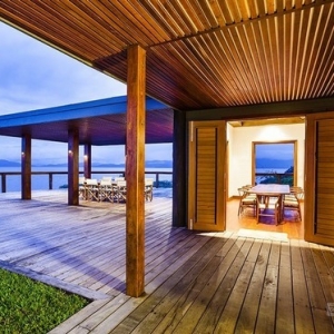这个度假酒店坐落在澳大利亚的卡考德罗韦,可以全方位欣赏到萨武萨武湾的美景。由本土的Madeleine Blanchfield Architects设计完成。酒店由两个层次的七个独立的建筑组成,包括室内、室外两个正式的用餐区,开放式厨房设计有一个单独的食品准备区,配备有传统的烘箱、大型木制烤炉及燃气烧烤炉。设计师大量使用木材来装饰房间。一个单独的休闲区被设计在了一根巨树的树枝上,你也可以在上面感受到独特的用餐体验。船棚里有山地自行车、皮划艇及浮潜设备,可以满足客人垂钓或潜水的需要。 关键词:海湾边的度假酒店设计 澳大利亚度假酒店