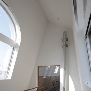 房子位于东京都文京区。该区域为丘陵景观,项目场地位于山顶,临着一个悬崖。悬崖中生长着许多无法触碰到的树木。 客户要求建筑师保留场地中的树,并考虑到面对悬崖的视线。建筑师在底部4.5米乘以16米的范围设计出房屋,接着采用大屋顶的方式控制视线。屋檐下的视线主要被引导向悬崖,有乔木在入口大厅出穿透屋檐伸向天空。屋顶阁楼的窗户让外界视线不能进入屋内,同时让屋内的人可以看见外面的树。中间层没有任何窗户,这里是一个大的储藏空间。 屋顶,就像是悬崖的延展,赋予这房子非凡的独特性。