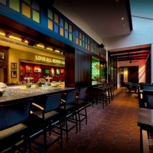 现代潮流化的Hard Rock咖啡厅设计,由 Blu Water 工作室负责设计。与其他的连锁店有类似之处,整体感觉十分潮流现代化,炫目的灯光,别致的椅子,另外别出心裁的在整体中融入摇滚物品的橱窗展示,十分有趣而且契合主题。