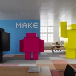 阿姆斯特丹创新办公空间设计,由Bercy Chen建筑设计工作室设计,项目位于Colorado河畔,是座被绿色植被覆盖屋顶的建筑。办公室内摆放的Driade- Nemo Chair面具椅子,吸引人的眼球,个性十足。鲜艳的颜色装饰,装饰绘画壁纸,方块形的地毯,给空间增添无限活力。 关键词:创新办公空间设计 办公空间设计