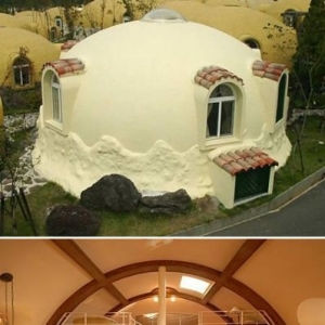 被称为21世纪“栖息地”的圆顶楼,是由日本一家公司设计完成的,材料多是聚苯乙烯泡沫,能够自由选择尺寸和配置,易于安装和移动,不会腐烂、不招小虫,并且绝缘、不易燃,无毒。