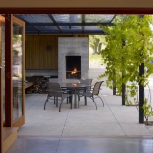 这是一座位于美国加利福尼亚州的Santa Ynez住宅,是一座节能环保型生态住宅装修,是由Fernau + Hartman Architects负责的一个住宅项目。节能环保型生态住宅装修设计旨在创建一个高效节能的家,同时和周围的景观和乡郊环境、相互辉映。室内木质的天花板和木质的桌椅,原木生态,宽敞舒适的空间。