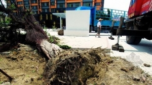 15日清早,多位市民投诉广州机场路1618号门前有多棵绿化树被砍伐。 现场一位自称萧岗村村委工作人员的乌姓负责人表示,被拉走的树,并不属于市政绿化树,是村里自己的树。“我们也不是砍掉,是移走,种在别的地方。”其称,工地正在修建的大厦,设计有一个大广场。这些树木过于粗大茂密,挡住视线,因此需要移走部分现有树木,重新种植新品种树木。而昨日被移走的树木共5棵,树干已有大碗口般粗,空空的树坑处只剩杂乱的泥土和零星的树叶。 随后记者致电萧岗村村委负责人,其表示,村委并没有一名乌姓工作人员,机场路1618号门前的树,也并不属于萧岗村。而记者多番打听寻找,终于拨通了负责白云区道路绿化工作的区城管局园林绿化科电话,工作人员何姓科长表示,目前已接到相关投诉,有工作人员已赶往现场调查。 何科长介绍,根据现场工作人员初步调查,被修砍移走的树木,并不属于市政绿化树,估计是旧时留下的树木。但其强调,无论该地区绿化树归属是哪个部门,按照森林法和绿化管理条例等相关规定,迁移、砍伐树木都需要到市林业和园林局或区城管申请。“可是查了一下,目前区城管方面,并没有收到任何相关申请”。何科长表示,若经查核发现属于违规迁移砍伐,则会将施工单位移交到城管执法部门,进行相应处罚。